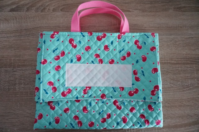 【吉田幼稚園教材入れ】お手提げ[水色ギンガムさくらんぼ柄] 吉田幼稚園への入園準備で必要な「教材入れ(お手提げ)」をハンドメイドしました。 長くお使い頂ける様に裏生地をつけ、職業用ミシンでできるだけ丈夫にお作りしました。 ネームテープも縫い付け済みなので、すぐにお使い頂けます♪ 【柄・カラー】 (表側)水色ギンガムさくらんぼ柄 (裏側)ピンク太めストライプ (ベルト)水色 【サイズ】 教材入れ(お手提げ) 縦約28㎝×横約37㎝程度 ※イスの背もたれにかけるための「かぶせ」が二重についています。 ※表生地はふわふわのキルティング生地です。 ★ハンドメイドのため、サイズの誤差はご了承下さい。 ★お洗濯の際は優しく手洗いすることがお勧めですが、洗濯機の場合はネットに入れて下さい。乾燥機のご使用は避けて下さい。 ★折りたたんだ状態でご注文から3日程度で発送させて頂きます。
