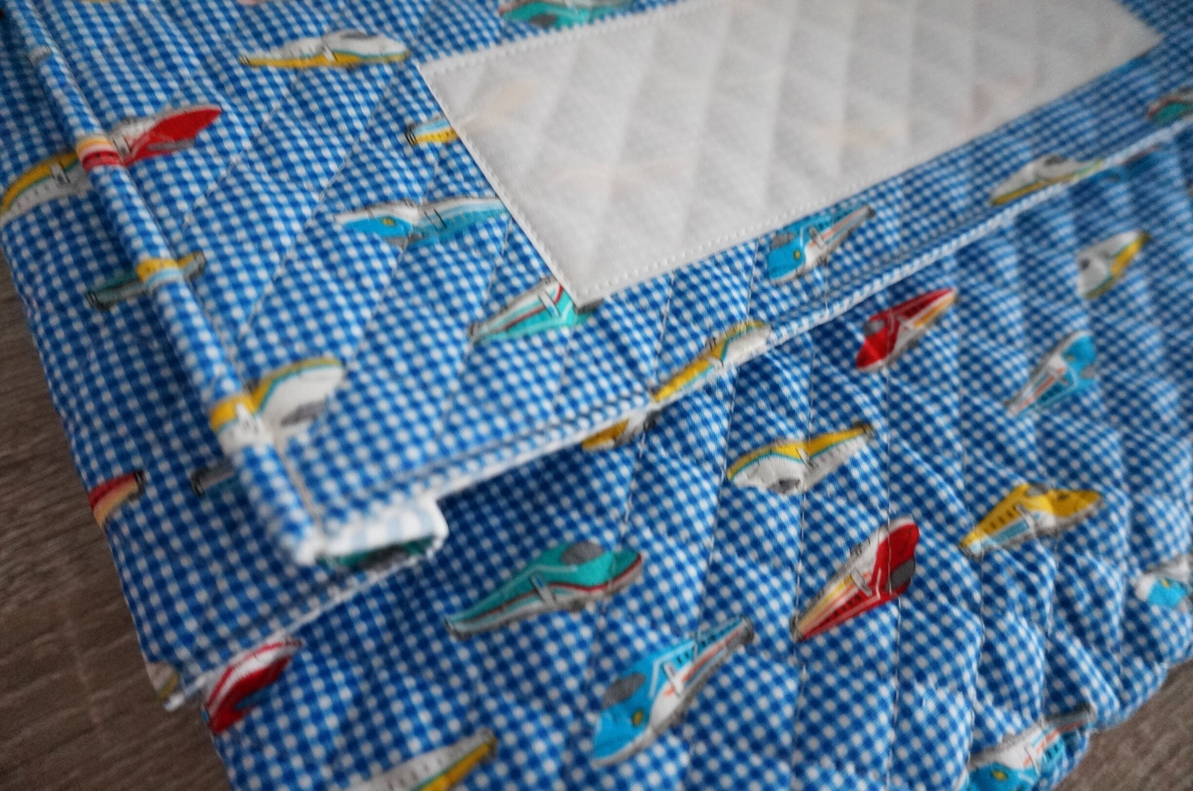 【吉田幼稚園教材入れ】お手提げ[ギンガムチェック電車柄]