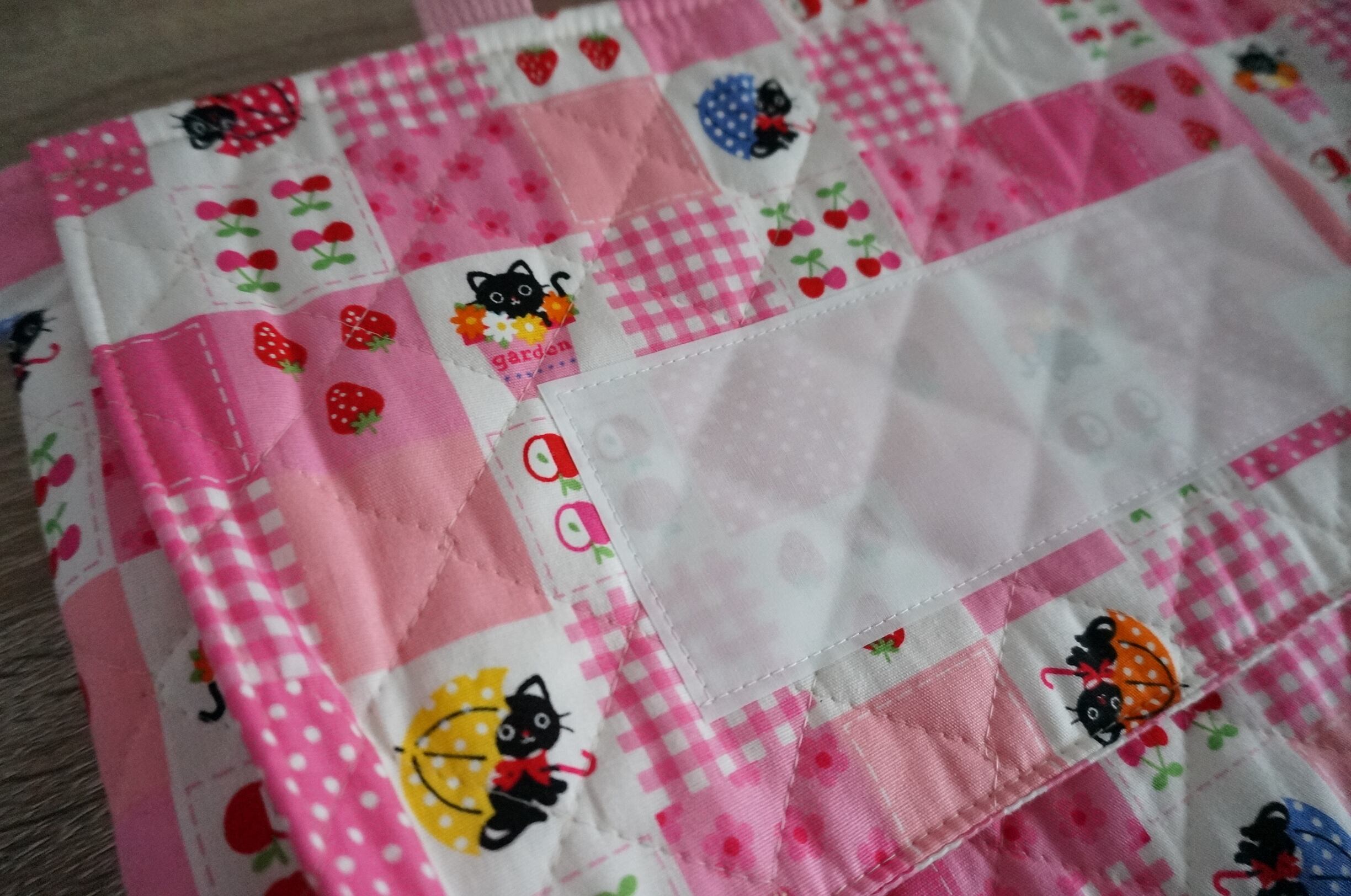 【吉田幼稚園完成品】教材入れ[ピンクチェック黒猫柄]