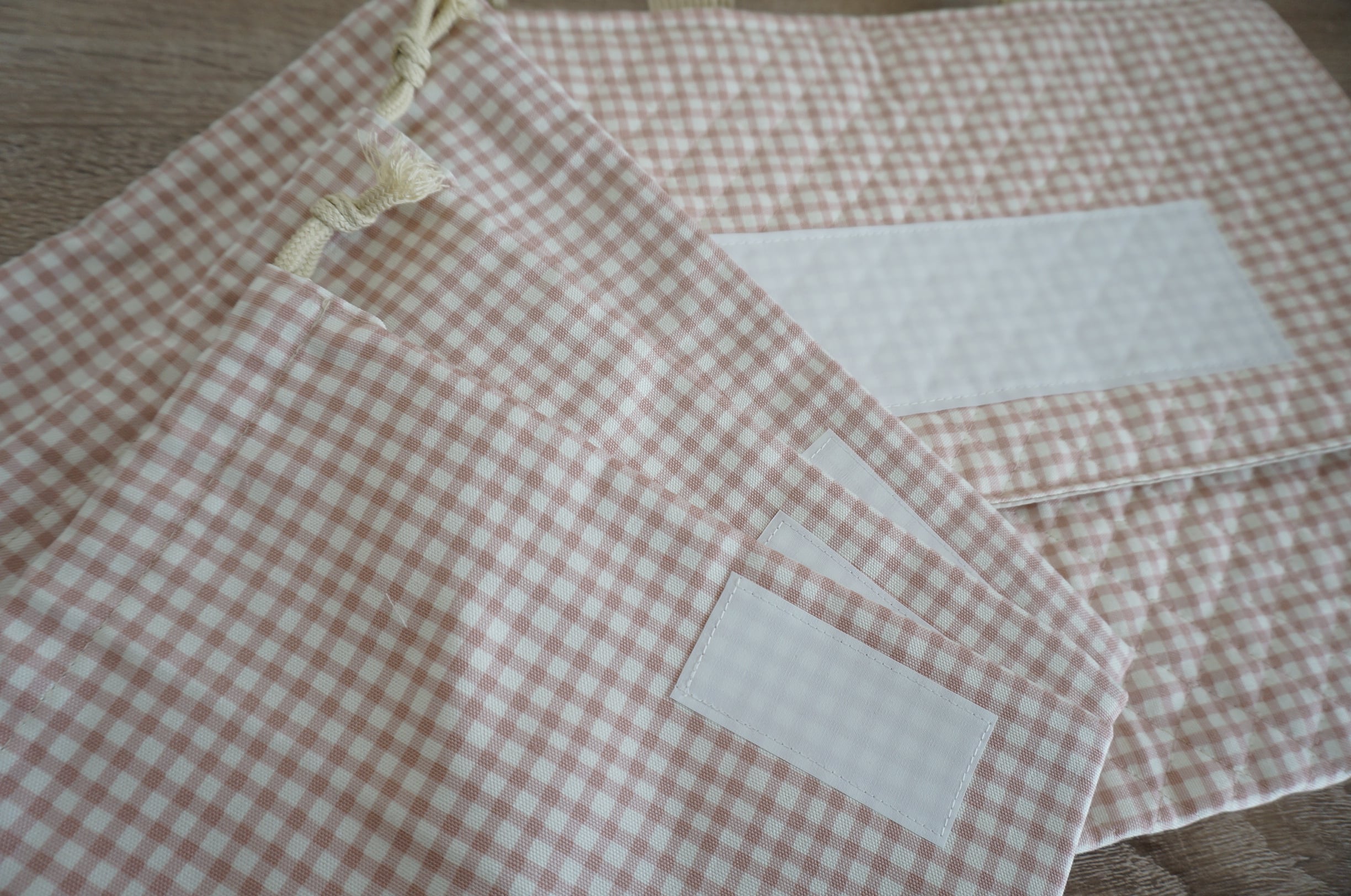 【吉田幼稚園お揃いセット】教材入れ&巾着袋3点[ラテカラーチェック(ピンク)]