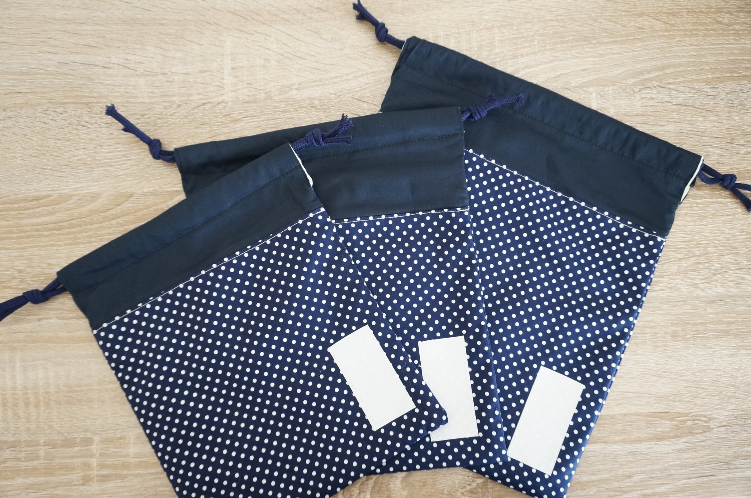 【吉田幼稚園お揃いセット】教材入れ&巾着袋3点[ネイビードット柄 切替あり]