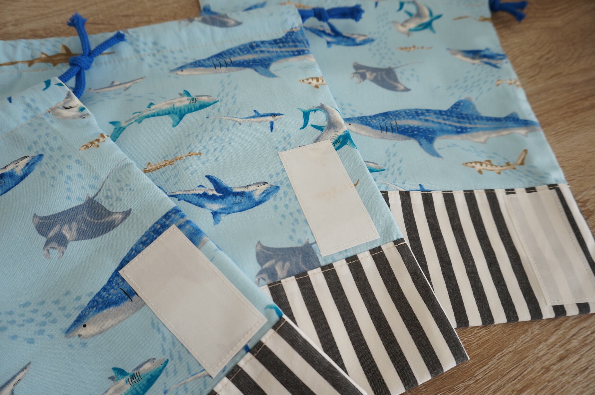 【吉田幼稚園お揃いセット】教材入れ&巾着袋3点[水色系海のいきもの柄 切替あり]