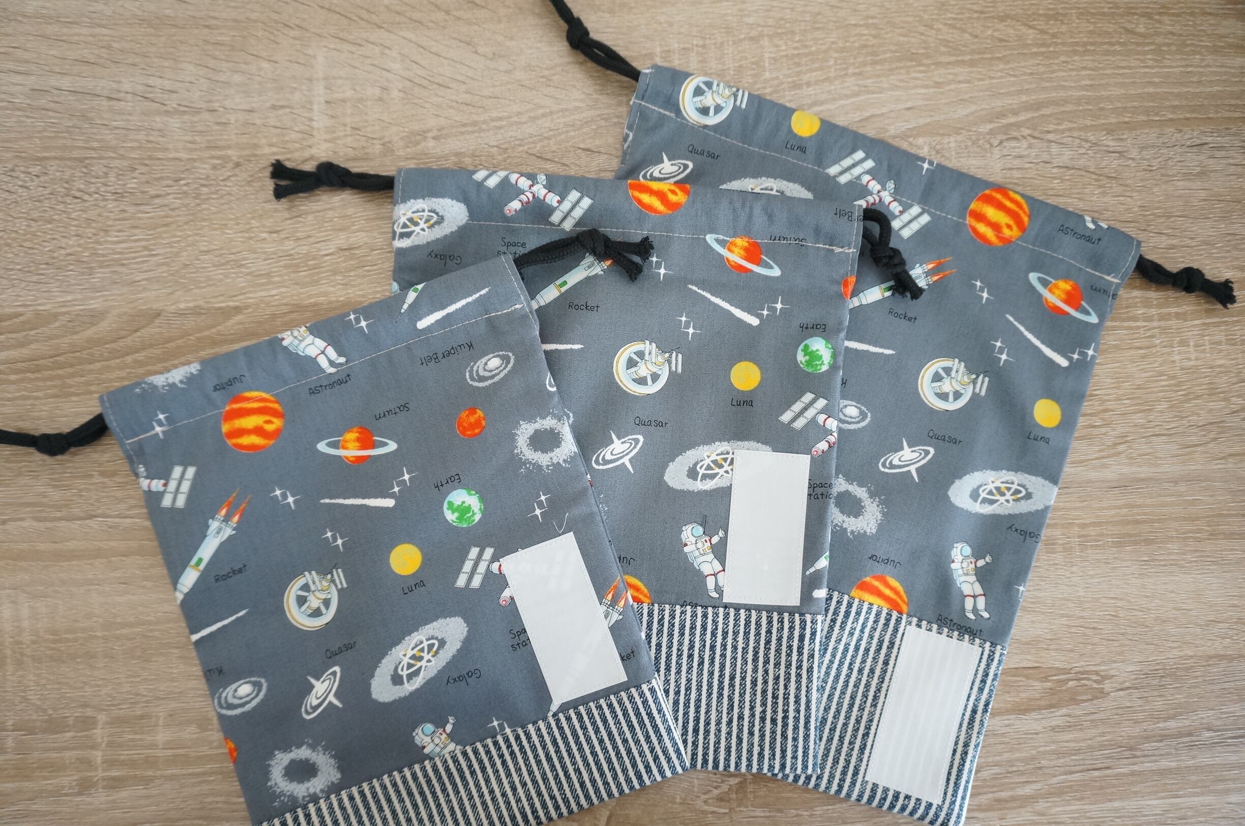 【吉田幼稚園お揃いセット】教材入れ&巾着袋3点[グレー系宇宙柄 切替あり]